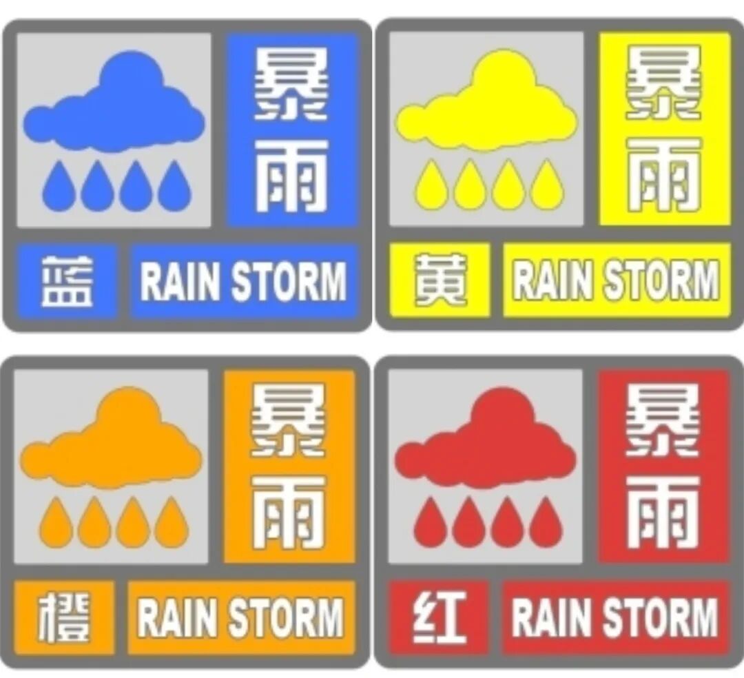 气象预警:中国暴雨预警信号分为四级,按严重程度从低到高依次以蓝色、黄色、橙色、红色表示,各级别对应不同的降雨强度和防御要求。一旦发布暴雨、雷电预警,尤其是橙色与红色预警,应立即取消或推迟户外活动。
